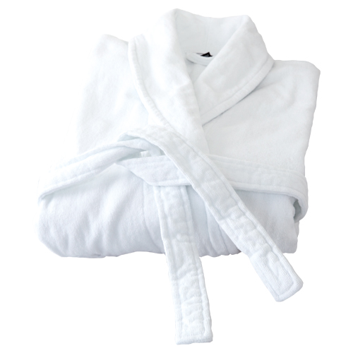 Erhältlich in der Farbe uni weiß, 320 g/m2 Qualität, 100% Baumwolle (außen Velour - innen Frottee), bei 60° C waschbar und trocknergeeignet.